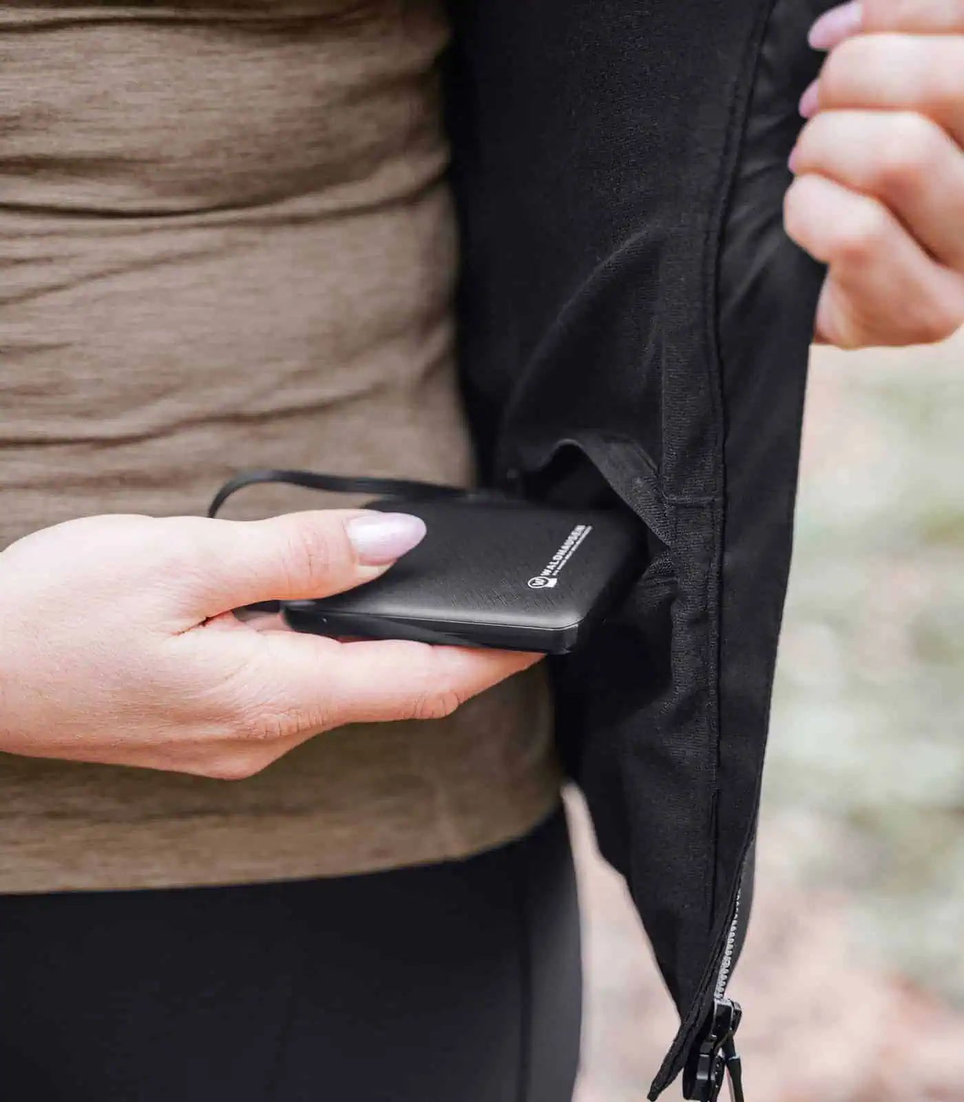 - The powerbank is connected to the USB socket in the inside pocket and kept there