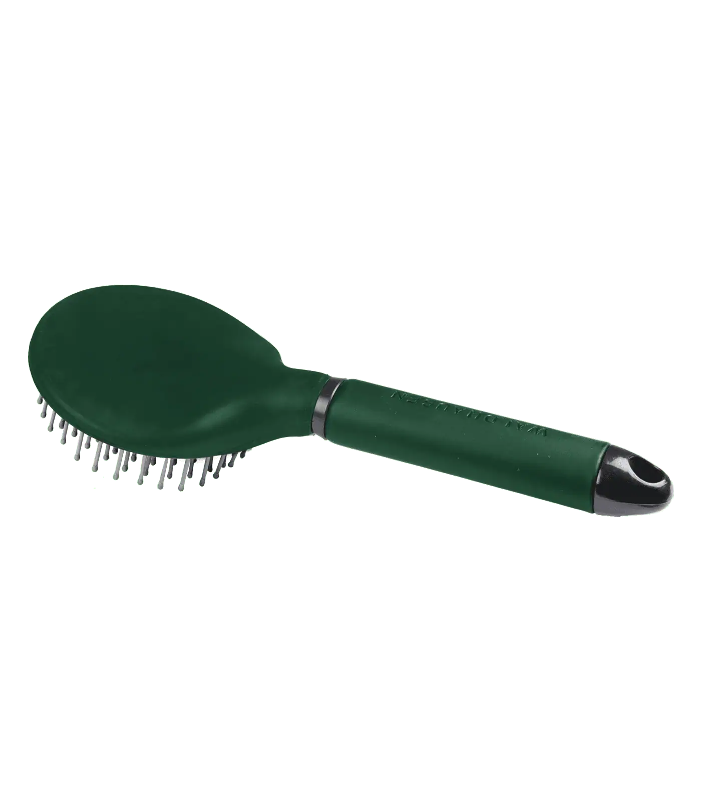 Mane and tail brush with high-quality synthetic leather brush handle.