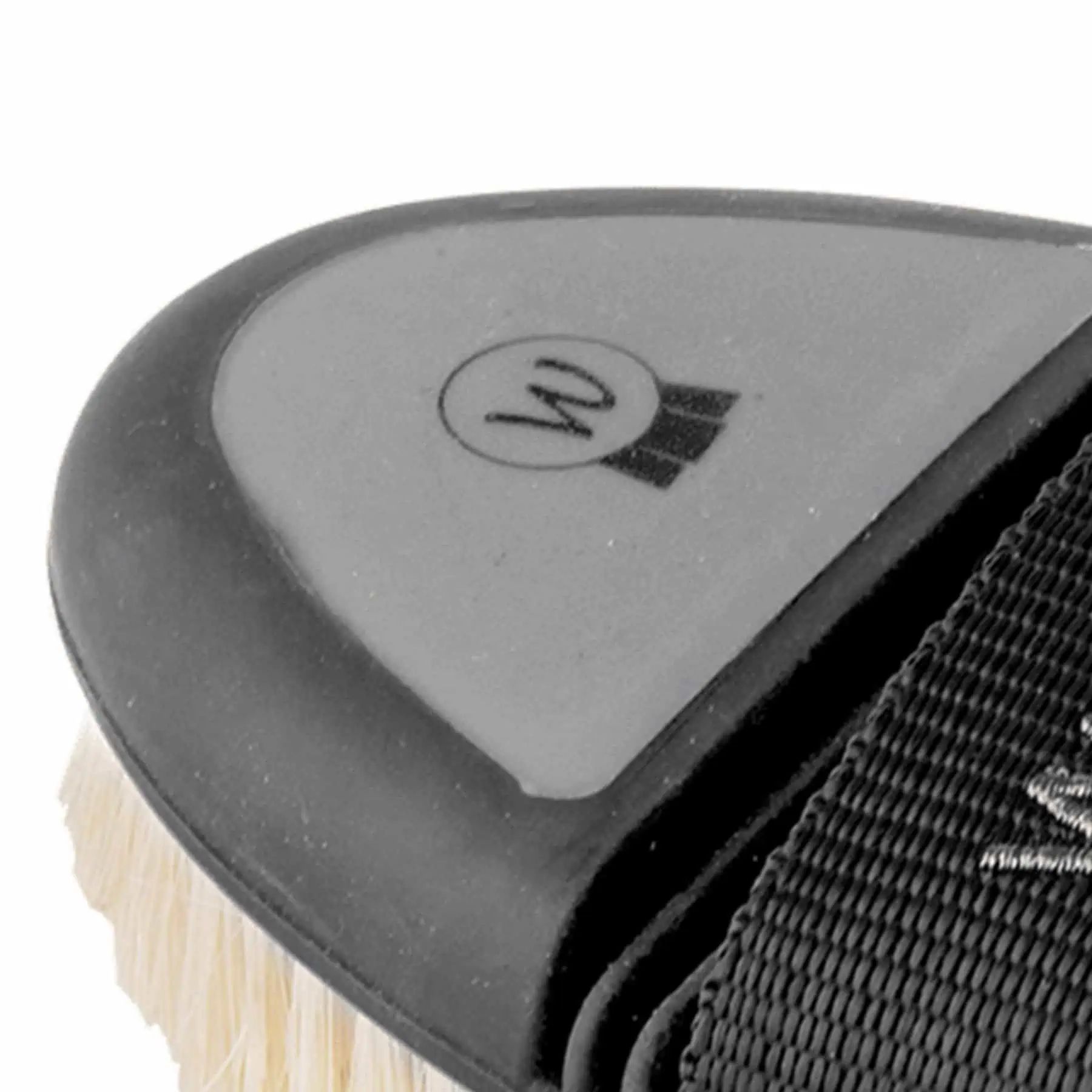 Its sturdy natural bristles make it perfect for removing hard dirt such as mud from all over the horse.