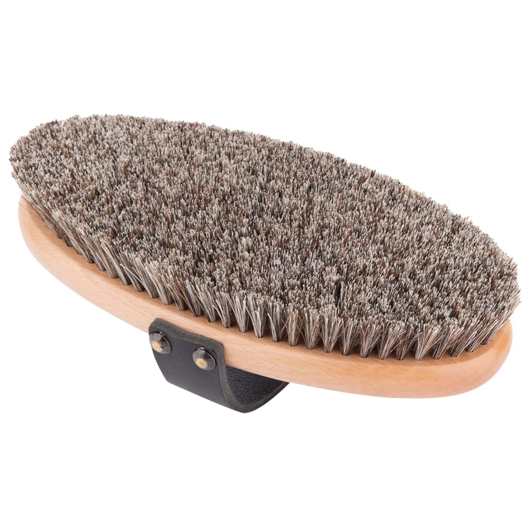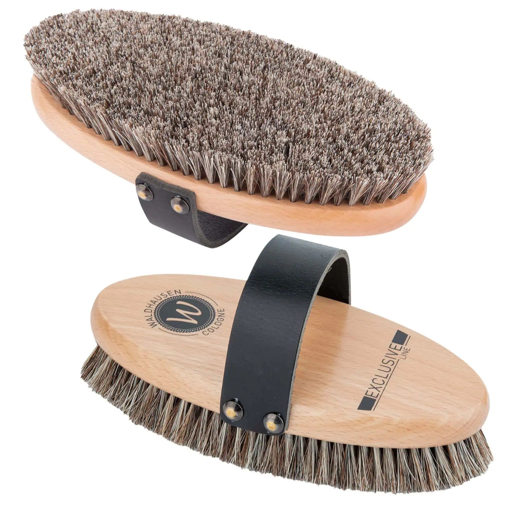 Dense bristle field with a high quality bristle mix (50% horse hair/50% synthetic fibres). The body brush combines an outstanding grooming result with a pleasant massage for the horse. The dirt is easily extricated and the coat given a beautiful shine.