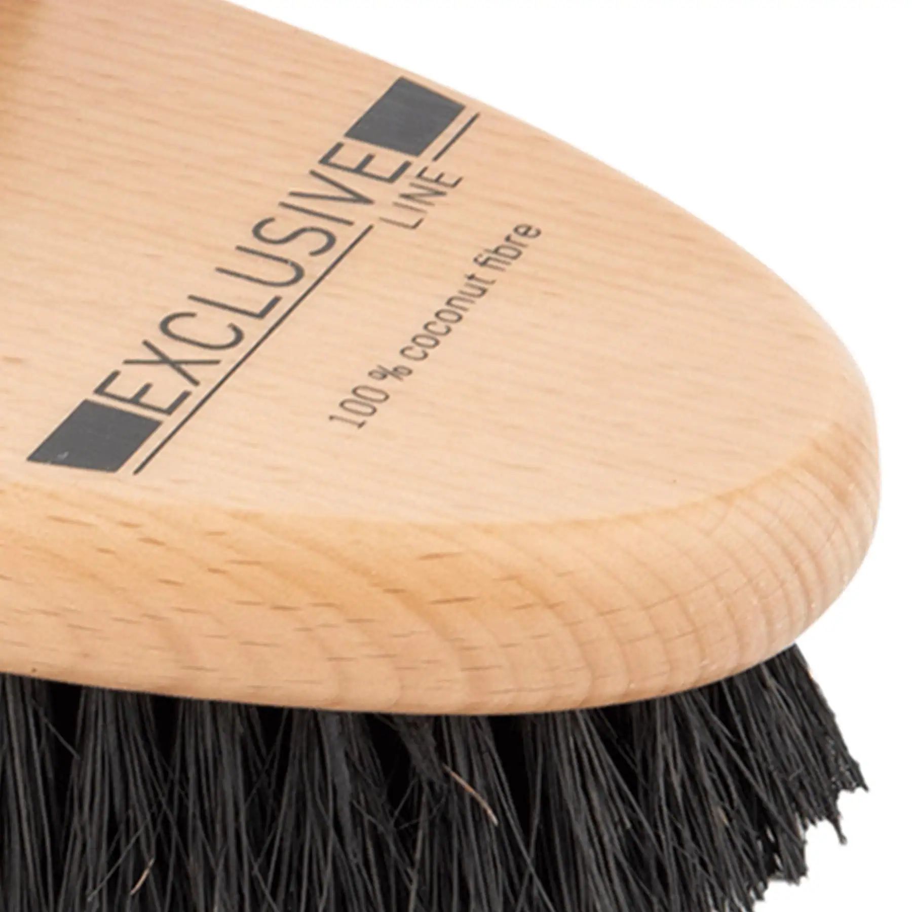 This large horse body brush with a dense firm bristle field in 100% natural coconut fibres is particularly suited for cleaning grey horses and those with light coloured coats. The stiff coconut fibres reliably remove even the most stubborn deposits on white or light-coloured coats. Stable and grass stains don’t have a chance.
