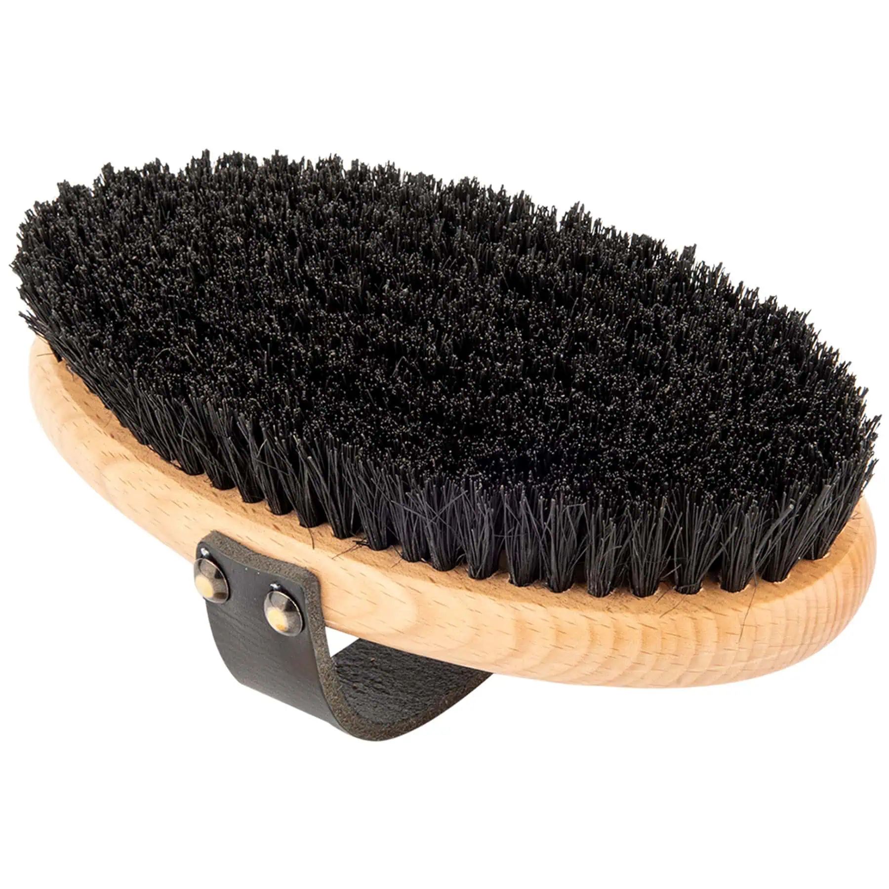 This medium-sized body brush combines an outstanding grooming result with a pleasant TLC session for the horse and is indispensable for daily grooming. The densely worked horsehair in premium quality from the tail of the horse also remove even the last speck of dust and hence produce a wonderful gleam to the coat. By using natural materials, the coat is also perfectly conditioned as the former guarantee a moisturizing effect. Natural materials do not produce static.