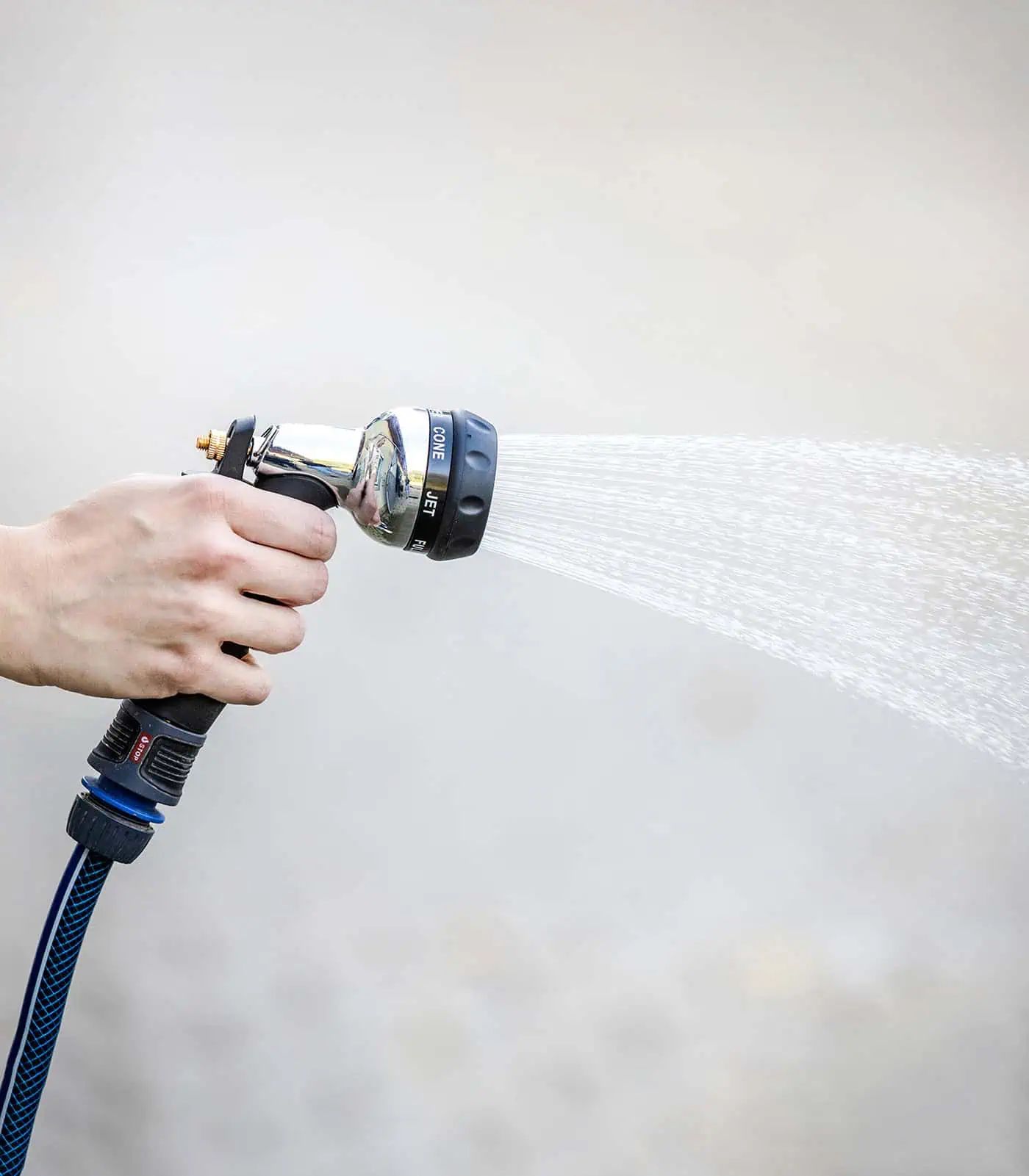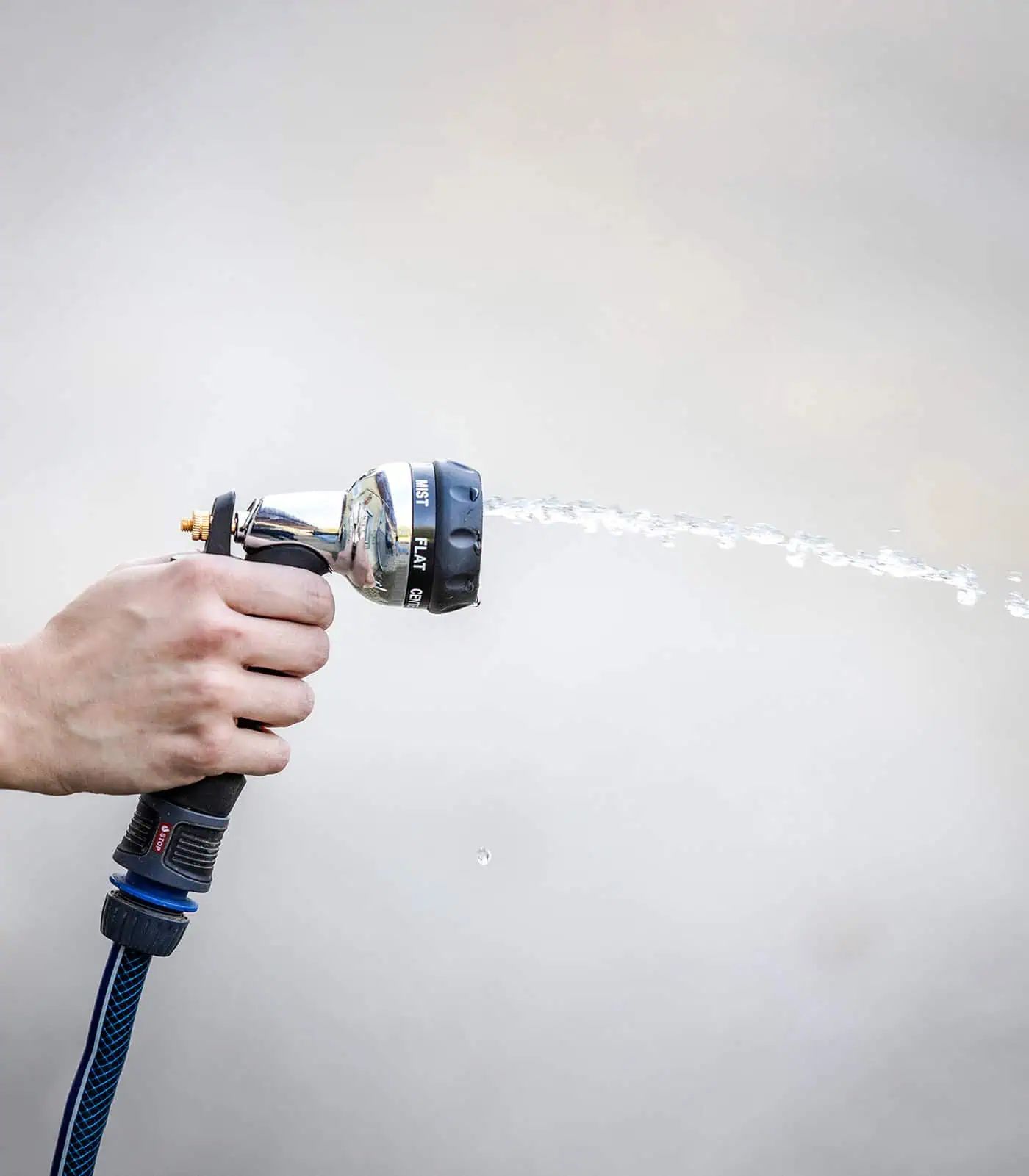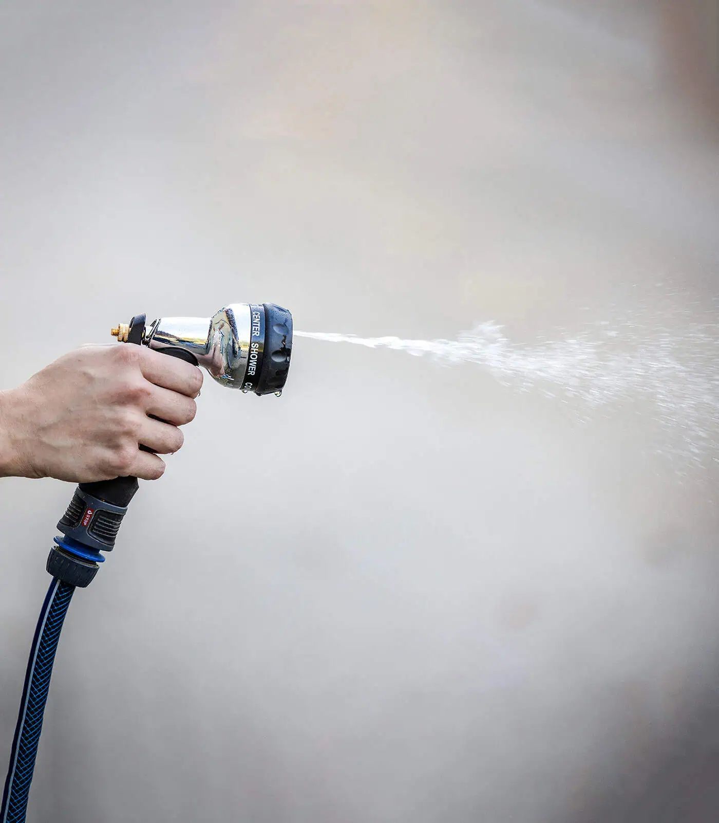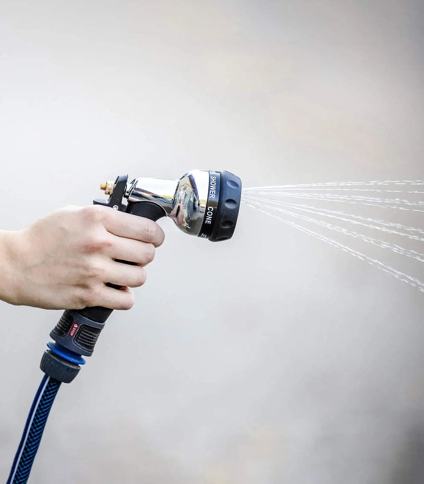 Robust shower head made of high quality plastic with 7 spray patterns, from wide to narrow spray range, strong to soft jets, the brass multi-function shower head is perfect for any use in the stable and on the go. Continuous dosing of water delivery and permanent lock for non-stop spraying. Easy to operate with one hand.