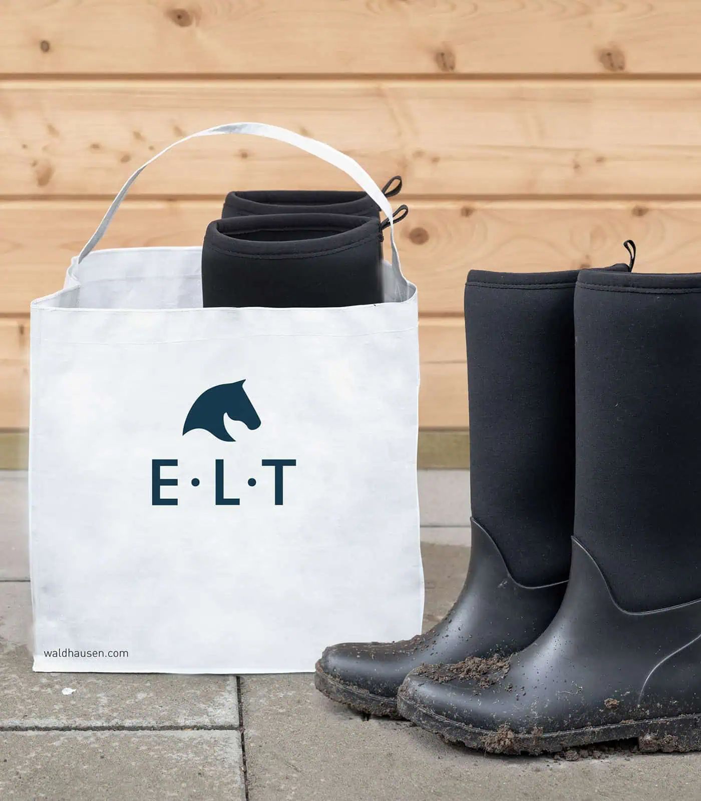 Ideal for storing dirty stable footwear. A centrally placed handle ensures comfortable carrying. WALDHAUSEN or ELT logo print front and back.