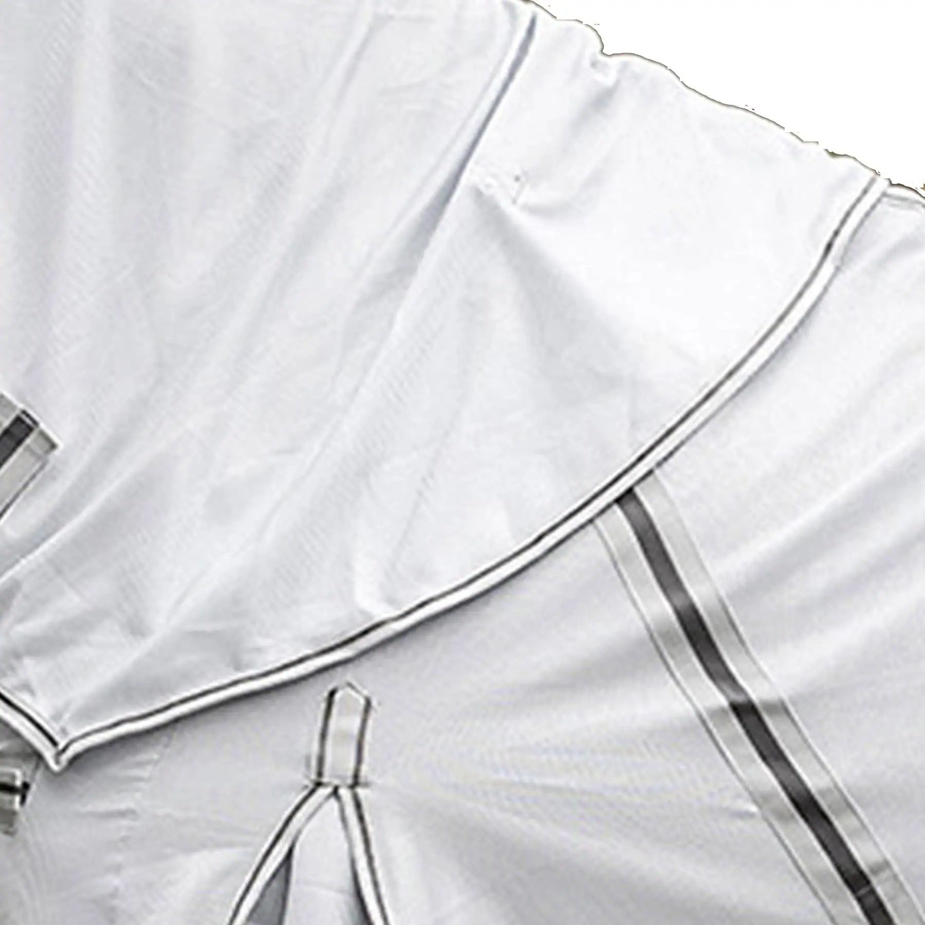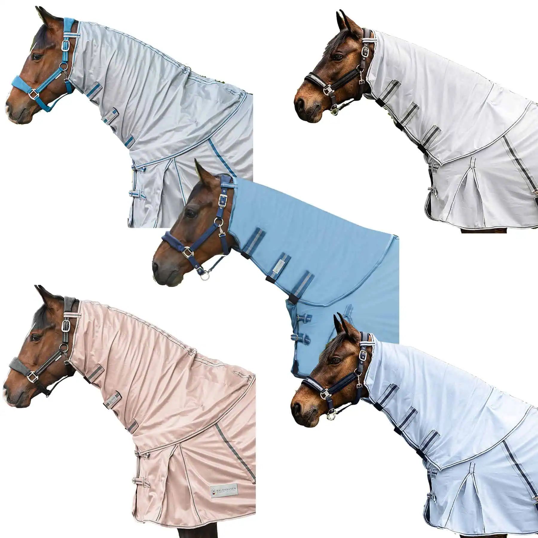 High quality neck piece made of finely meshed fabric to protect neck and mane from annoying insects. Features three strong touch tape fasteners and attachment straps for halter or bridle. Perfectly matches our fly rug 631430.. and exercise sheet 631520...