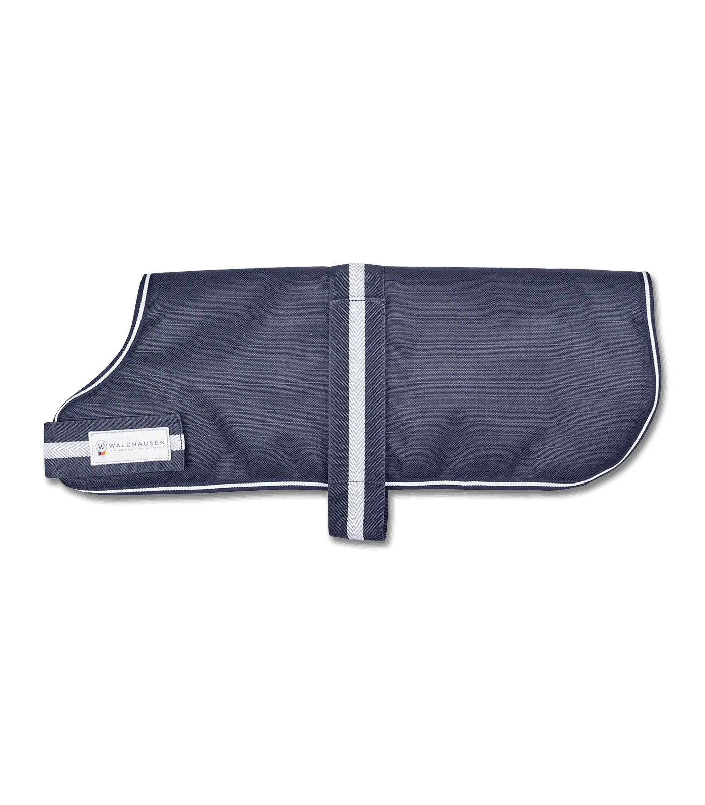 Warming, waterproof dog coat in extra sturdy 1200 denier outer fabric. 200 g/m² thermal lining. Wide touch tape fasteners enable a good fit.