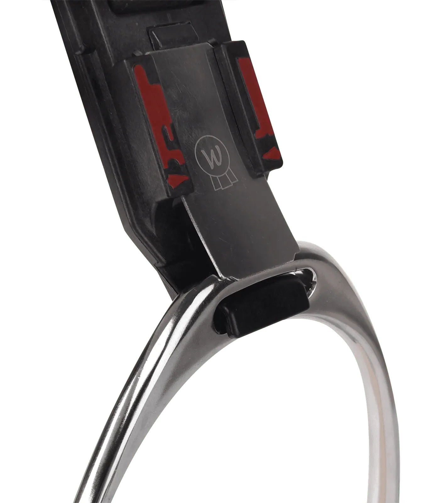The new Waldhausen stirrup safety device - if the rider"s foot becomes wedged in the stirrup, the rider will separate from the horse in the event of falling off the horse. When the stirrup reaches a certain angle in the safety clip, the two detach from each other. Important: pay careful attention to the assembly instructions when attaching the item.Pair.