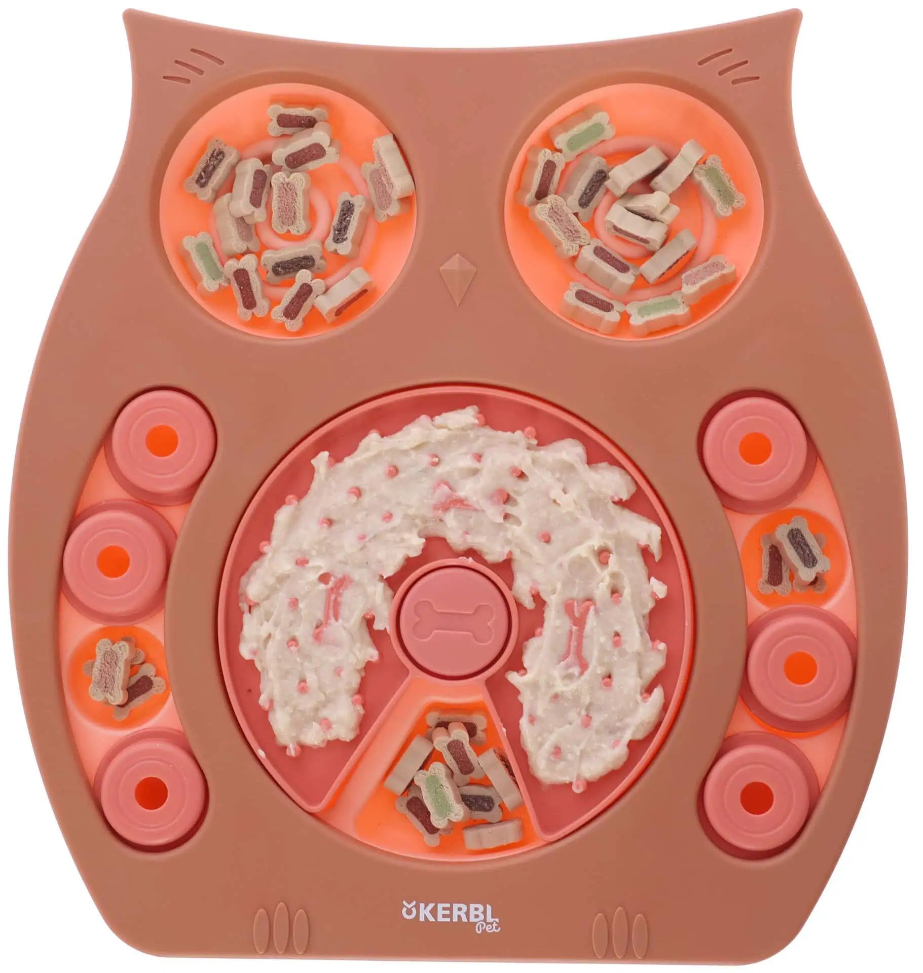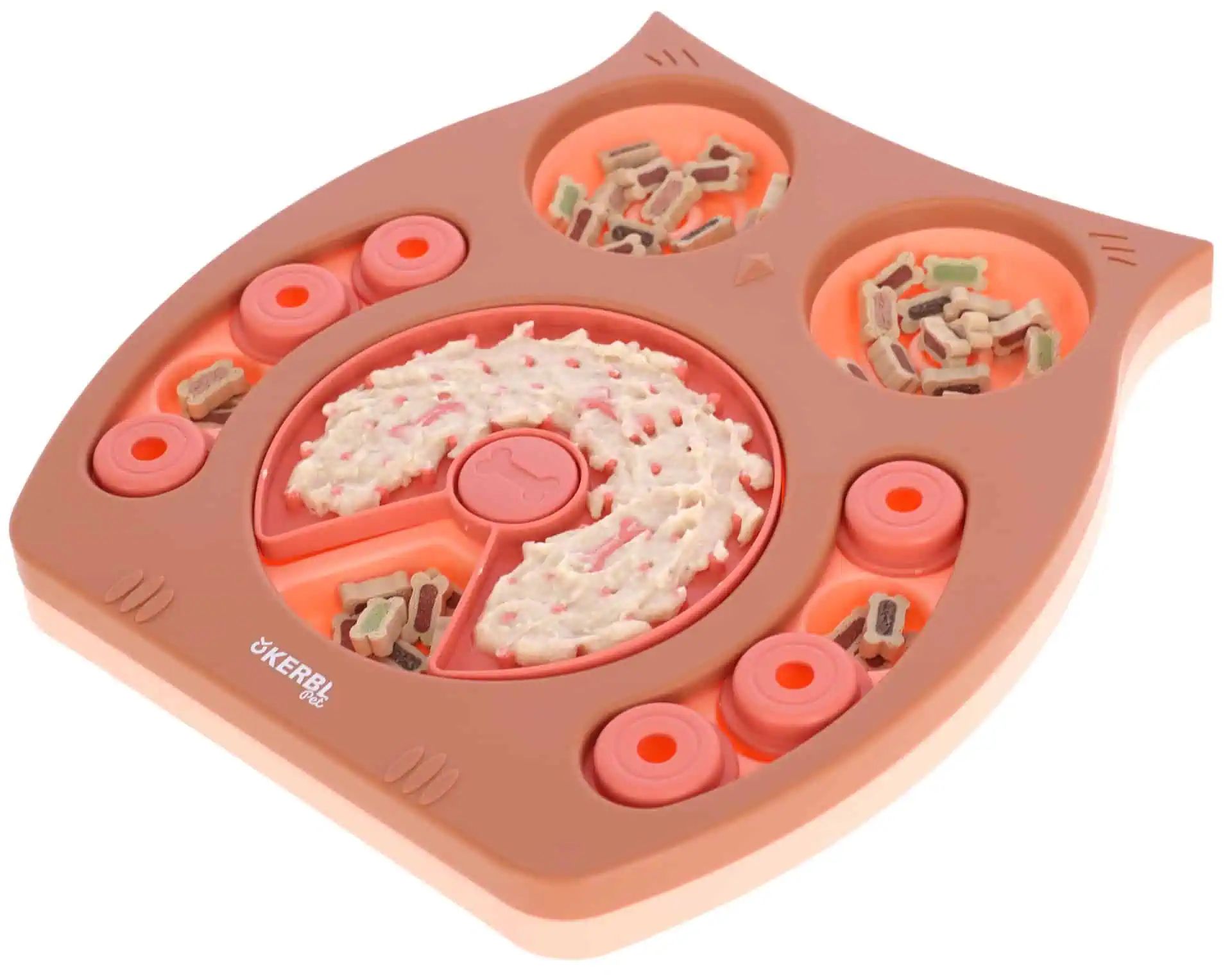 The Thinking and Learning Toy Owl is an innovative intelligence toy for small and medium-sized dogs and cats that mentally and physically challenges your pet. The owl can be filled with snacks and treats to stimulate their natural hunting and play instincts. Additionally, the toy comes with a licking plate for pastes and creams, adding versatility and making it even more interesting for your pet. The toy also helps to prevent rapid eating and alleviates boredom.