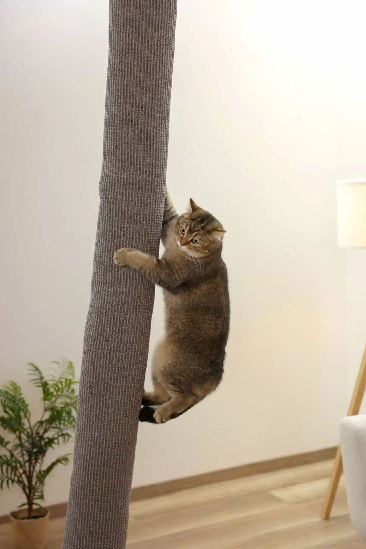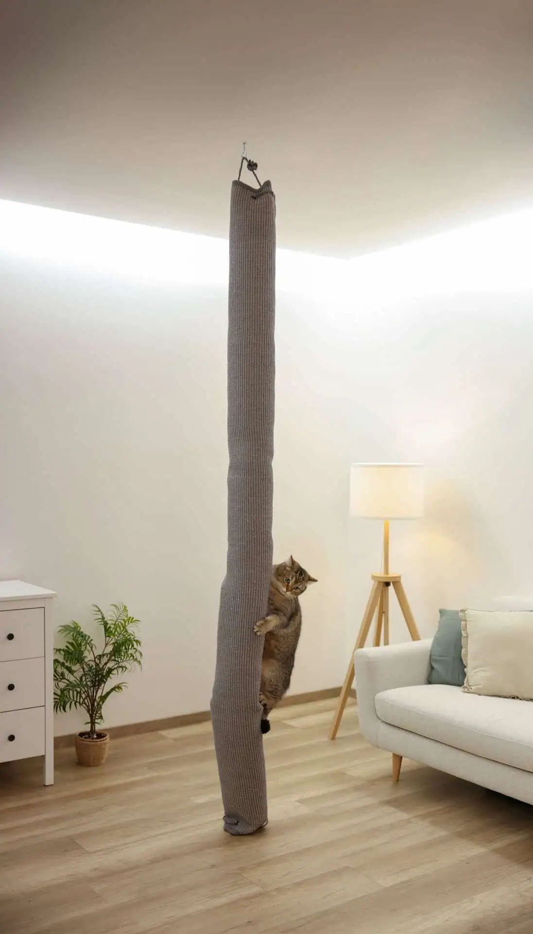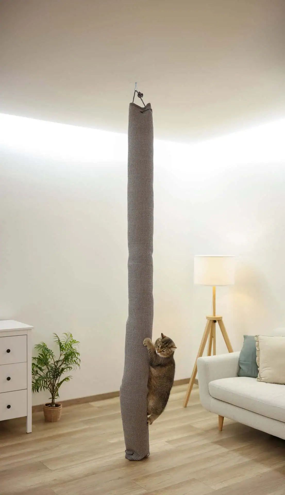 The Climbing Bag Climber offers your cats endless opportunities for playing and frolicking. This innovative product is specifically designed to be mounted on the ceiling, making it the perfect climbing spot to foster your cat's natural instincts. The Climbing Bag Climber is made from high-quality sisal carpet, which is not only sturdy and durable but also kind to your cat’s claws. Inside, it is filled with padded cushions, providing extra comfort and safety.