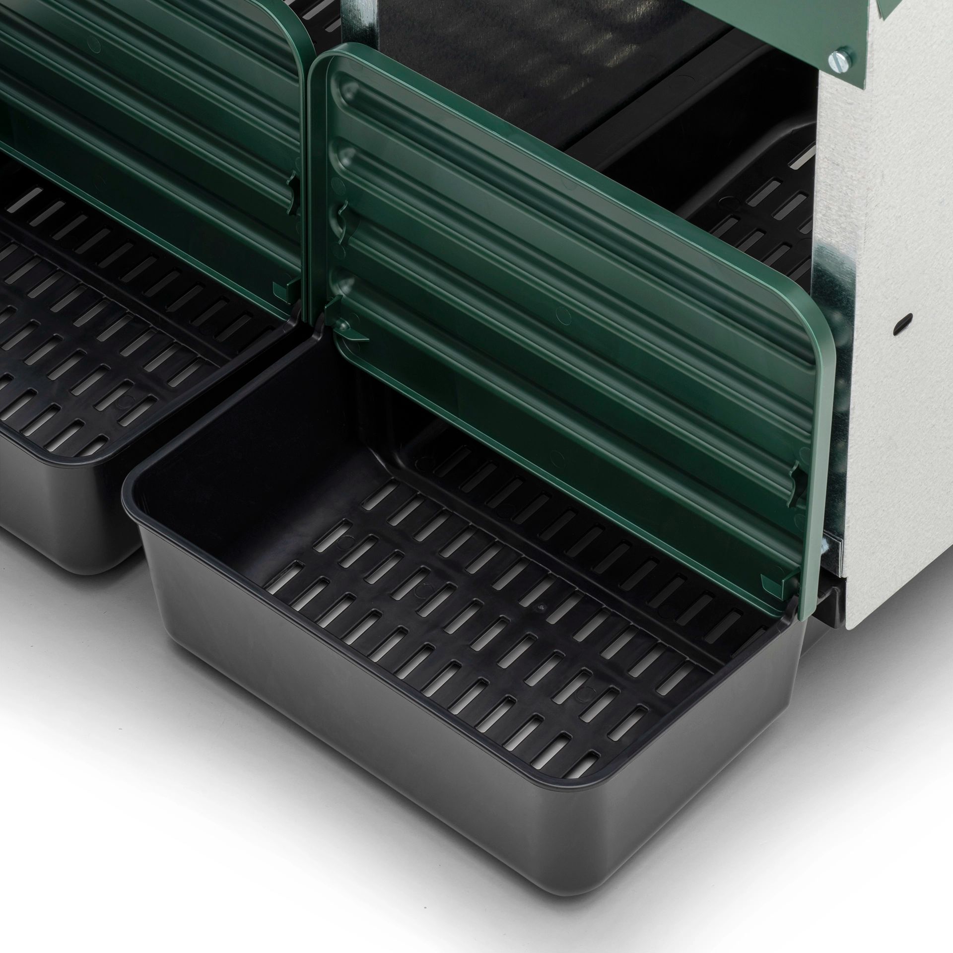 This solution is particularly beneficial for those who manage hobby poultry or operate small poultry farms. Its design for wall mounting not only saves space but also allows for straightforward installation. Made from galvanized metal and a plastic floor, it complies with the Textile Labeling Regulation, ensuring both long-lasting use and easy maintenance.