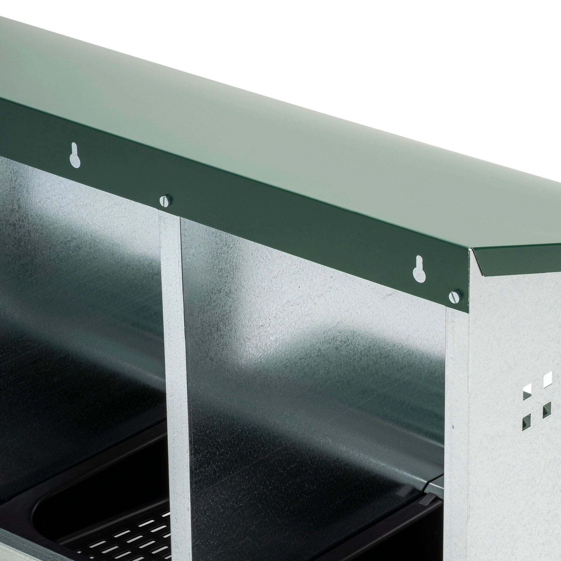 This solution is particularly beneficial for those who manage hobby poultry or operate small poultry farms. Its design for wall mounting not only saves space but also allows for straightforward installation. Made from galvanized metal and a plastic floor, it complies with the Textile Labeling Regulation, ensuring both long-lasting use and easy maintenance.