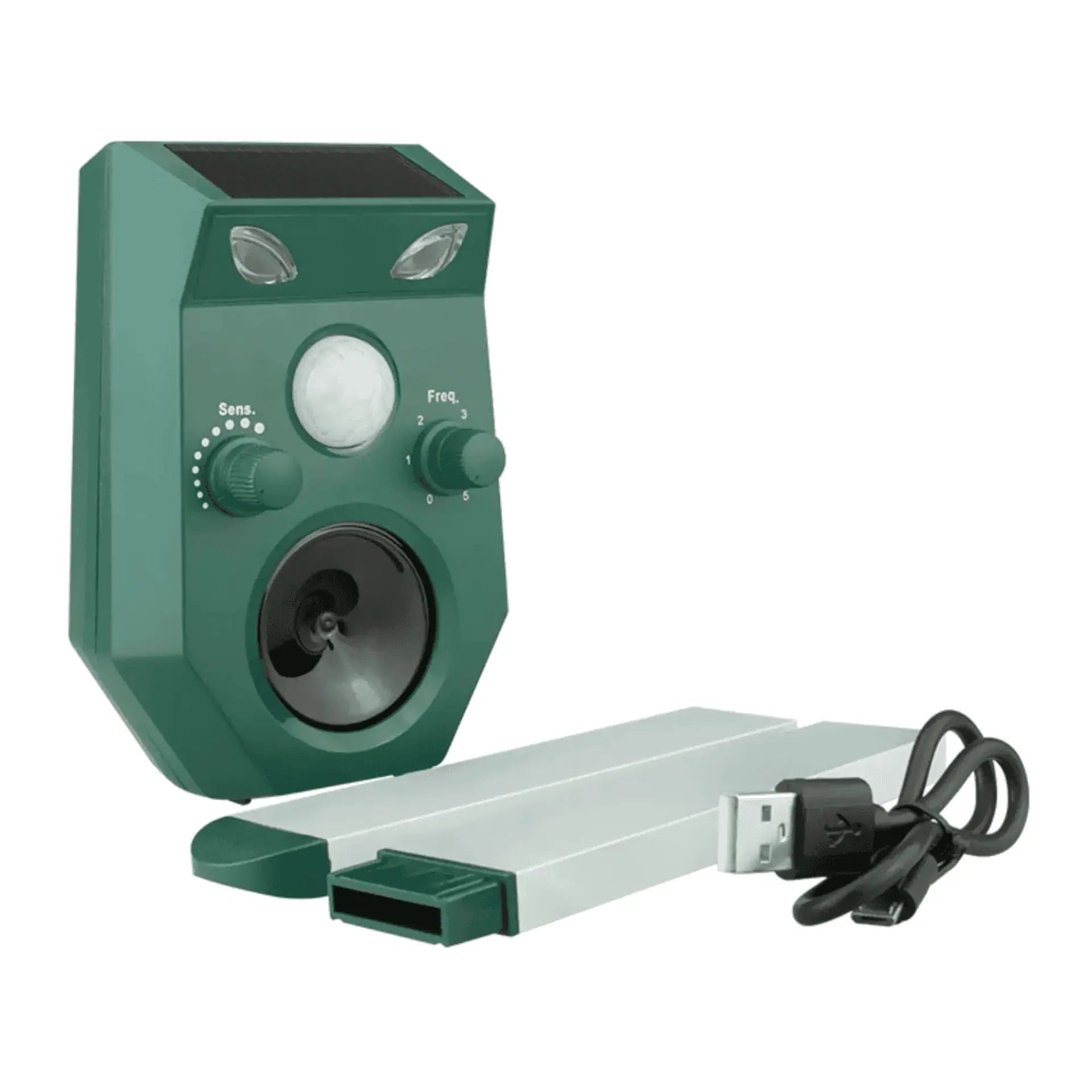 The Ultrasound Animal Repeller emits ultrasound waves and flashing lights that activate as soon as an animal enters the area. These signals deter animals without harming them.