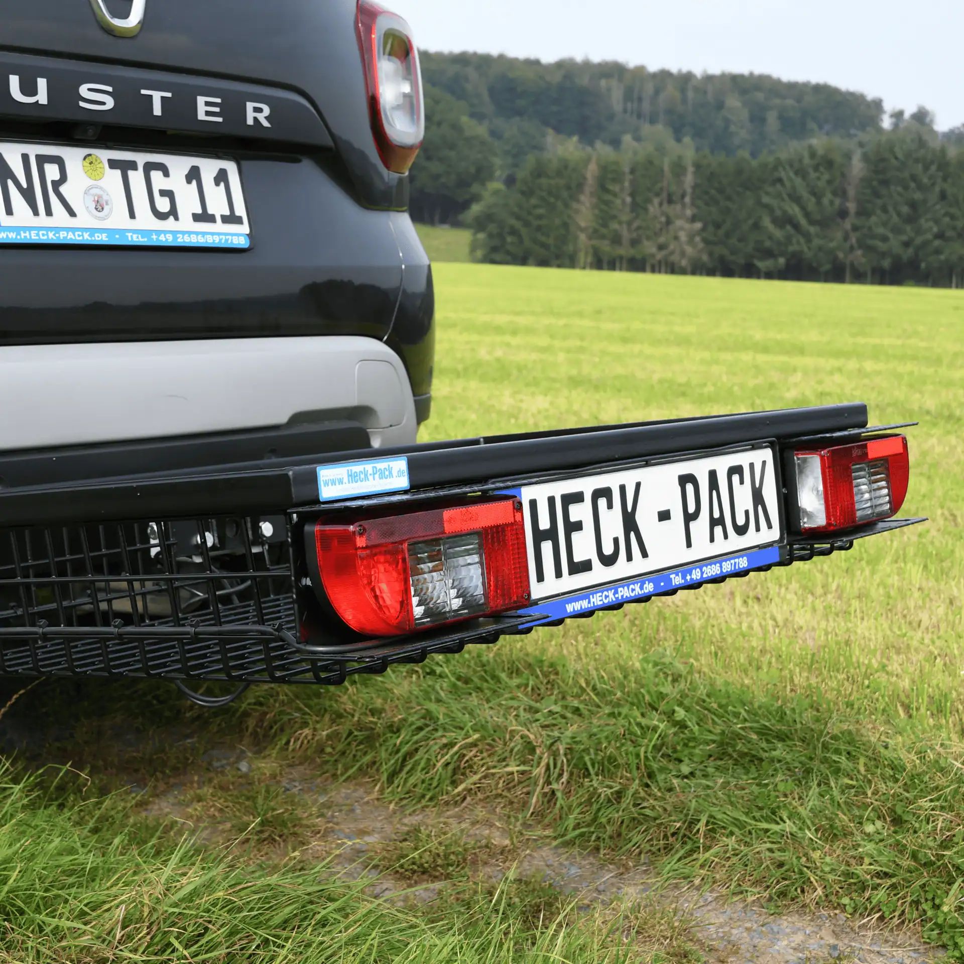 The Heck-Pack Lighting Set is the perfect solution to ensure the safety and visibility of your vehicle. It is not only a necessary accessory but also a stylish element that gives your vehicle a modern look. Equipped with turn signals, brake lights, rear lights, fog lights, license plate lights, and an integrated reflector, this complete unit provides all necessary functions and meets legal requirements. The protective housing made of durable, thick-walled aluminum tread plate safeguards the lights from external influences and ensures a long lifespan. Thanks to the high-quality powder coating in matte black (RAL9005) and the bent aluminum sheets with finely laser-cut cutouts, the lighting is not only robust but also visually appealing.