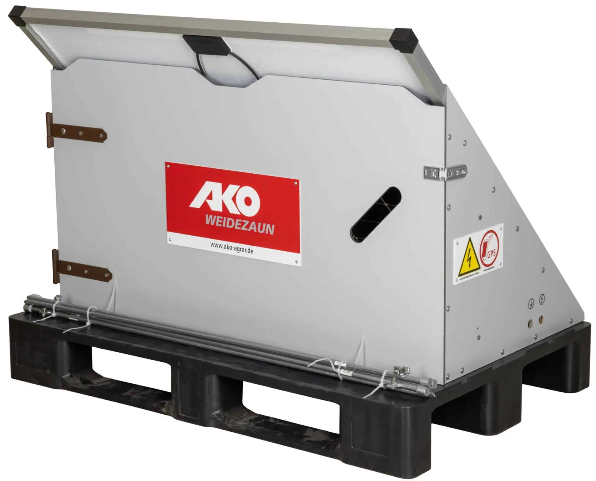 Imagine being able to securely fence your large pasture without a power connection and retaining full control at all times – no matter where you are. With the AKO Solar Station Smart you get exactly this freedom. The solar station supplies your fence system reliably and completely autonomously throughout the entire grazing season from April to October – perfect for large areas without a 230-volt connection. You can easily control the system remotely using the practical app: switching it on and off, GPS tracking, and monitoring are all done conveniently via smartphone, without any distance restrictions. The cloud connection ensures permanent, free mobile data transmission directly to your phone, so you always have everything in view. You don't have to worry about complicated wiring or installation: the fully assembled solar station is delivered ready-to-use on a plastic Euro pallet. After connecting the grounding and electric fence, everything is ready to go. This system is particularly practical for those who operate large, remote pastures and value independence and smart control. You can rest assured that your animals are safely fenced in – without any complex maintenance or electrical connection.
