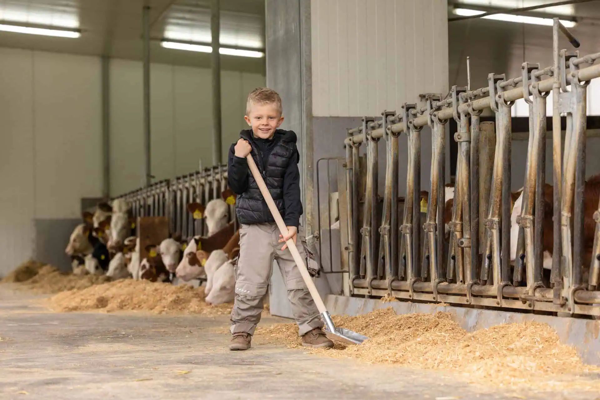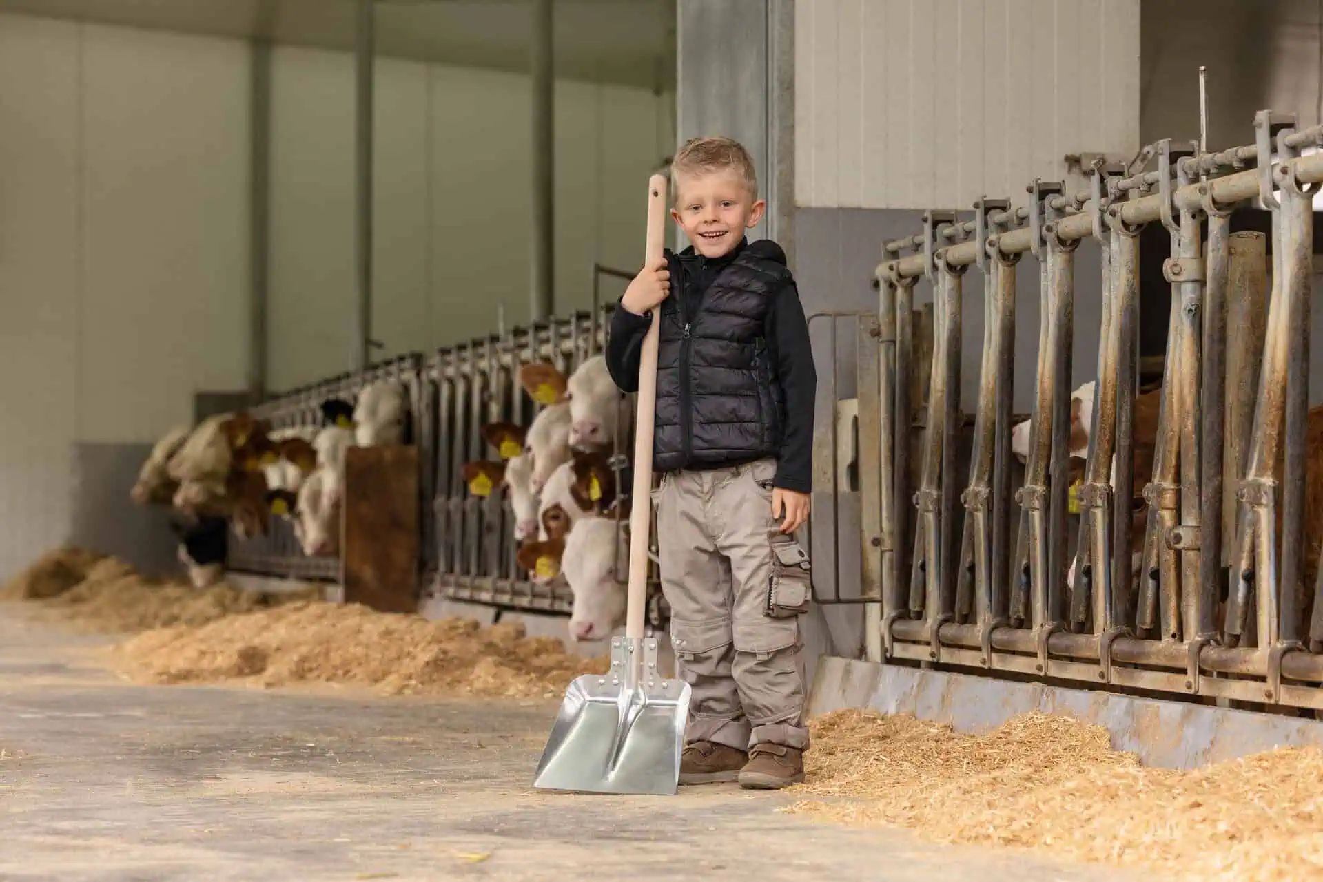 This robust children's silo shovel made of lightweight aluminum with an ergonomic wooden handle is ideal for children ages 5 and up. Its child-friendly design makes it ideal for scooping silage and light work in the stable - a practical tool for little helpers on the farm.