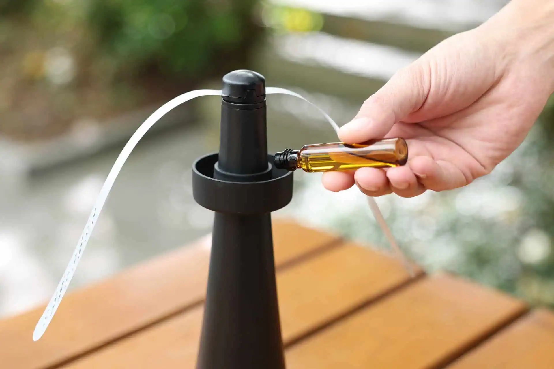 - The air turbulence created by the rotating and reflective blades, combined with essential oils in the bowl, makes it difficult for flies and wasps to approach