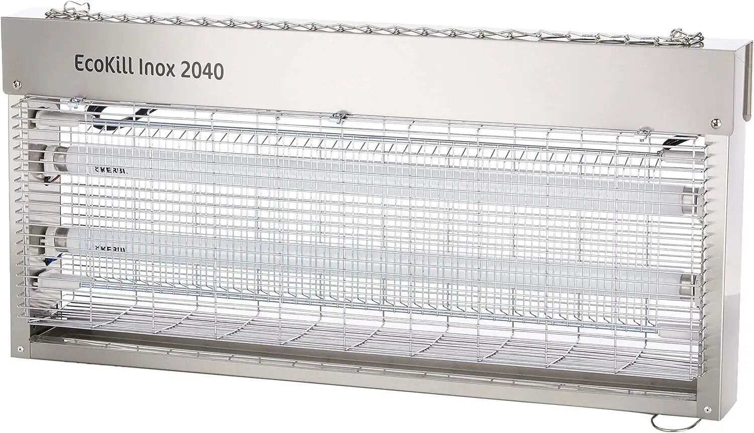 Noile ucigașe de muște electrice Inox cu carcasă din oțel inoxidabil de înaltă calitate. Toate modelele EcoKill Inox sunt testate TÜV-GS și sunt echipate cu lămpi UV de lungă durată. Carcasa din oțel inoxidabil de înaltă calitate, cu un finisaj mat, poate fi curățată în mod optim și își păstrează suprafața atractivă timp de ani de zile. Designul subțire cu grila evazată asigură proprietăți optime de captare.
