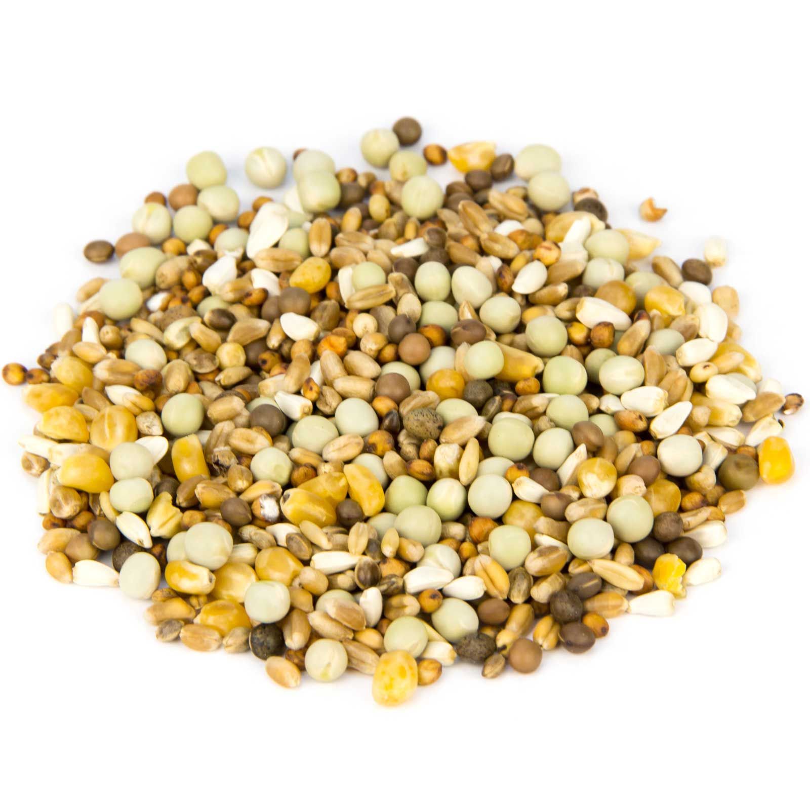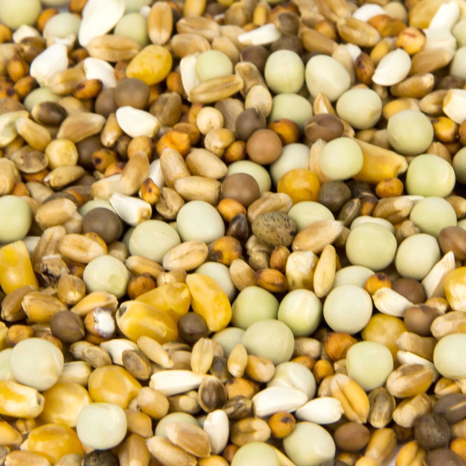 18 % mazăre mică, 10 % vită, 18 % porumb mic, 24 % grâu, 14 % boabe de milo, 4,5 % dari, 7 % semințe de cardi, 2 % cânepă, 2,5 % fulgi de ovăz.
