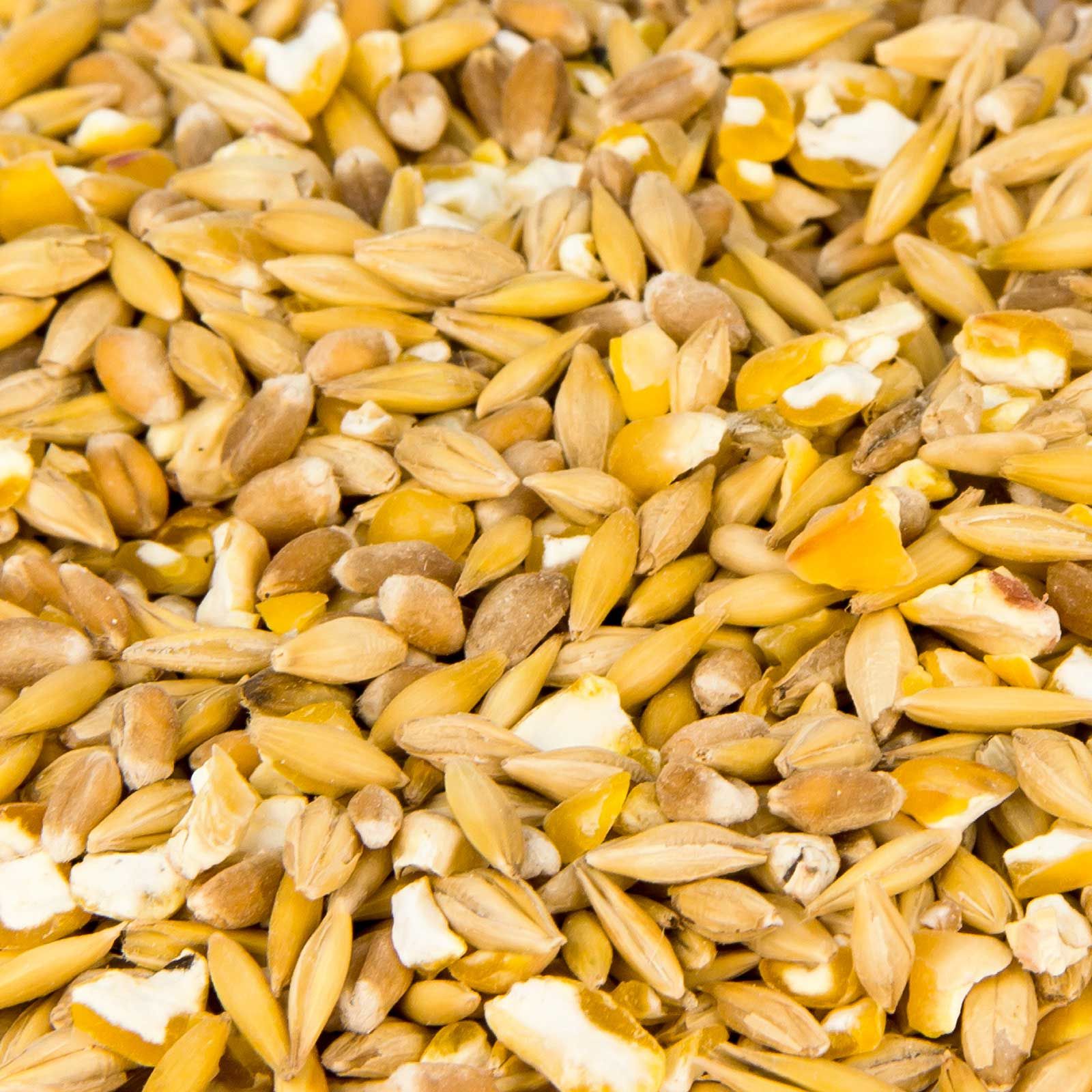 34,00% ovăz, 23,00% porumb măcinat grosier, 23,00% orz de bere, 20,00% grâu.