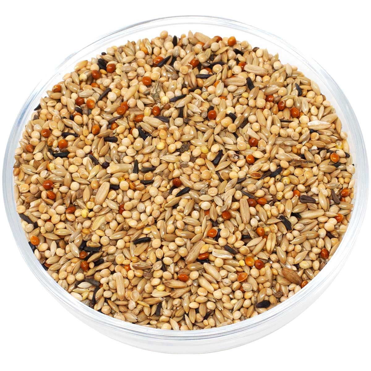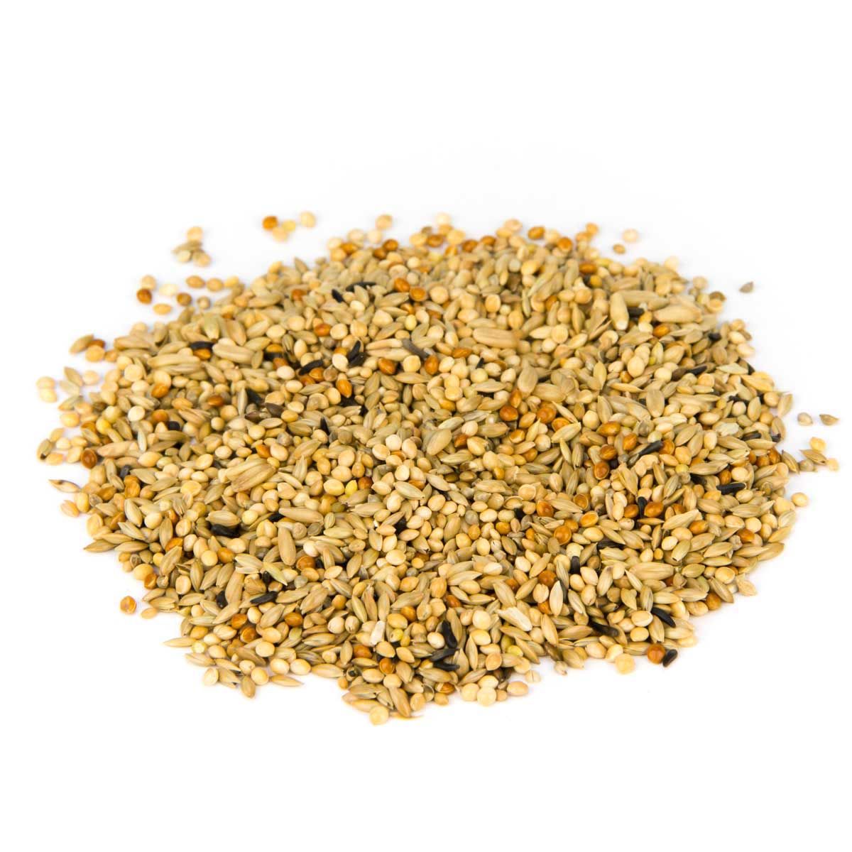 36,8 % mei galben, 33,8 % semințe lucioase, 12 % mei Senegal, 6,7 % mei roșu, 6,7 % fulgi de ovăz, 2 % mei japonez, 2 % semințe negre.