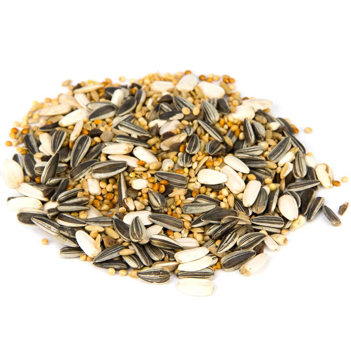 31 % mei galben, 27 % floarea-soarelui dungată, 5 % floarea-soarelui albă, 10 % mei roșu, 10 % semințe lucioase, 10 % fulgi de ovăz, 4 % hrișcă, 3 % semințe de cardi.