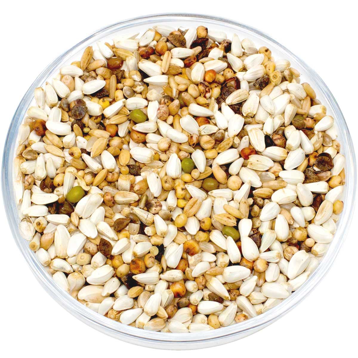 30,00 % semințe de cardi, 17,00 % dari, 10,00 % orez, 8,00 % fulgi de ovăz, 5,00 % hrișcă, 5,00 % cânepă europeană, 5,00 % grâu, 5,00 % mei alb, 5,00 % semințe lucioase, 5,00 % boabe de milo, 3,00 % orez nedecorticat, 2,00 % fasole mung.