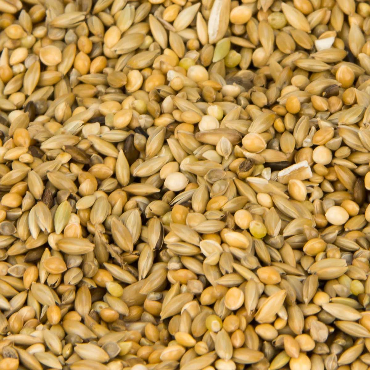 47 % semințe lucioase, 31 % mei galben, 2 % mei japonez, 5,4 % fulgi de ovăz, 12,4 % mei Senegal, 1,9 % cânepă, 0,3 % semințe negre.